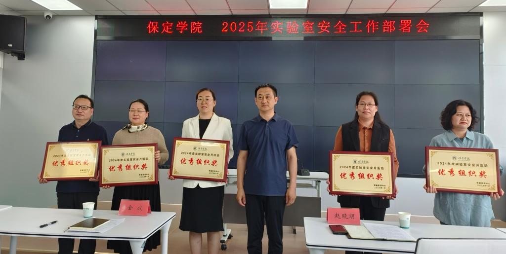 实验实训中心主要负责人传达了《河北省教育厅关于做好2025年高等学校实验室安全工作的通知》,并结合学校实际情况,对本年度我校实验室安全工作做工作部署。对在2024年“实验室安全月”活动中表现突出的生物化工与环境工程学院、信息工程学院、数据科学与软件工程学院、汽车与电子工程学院、外语教育与国际商务学院、文学院等6个单位进行了表彰,并颁发“优秀组织奖”。